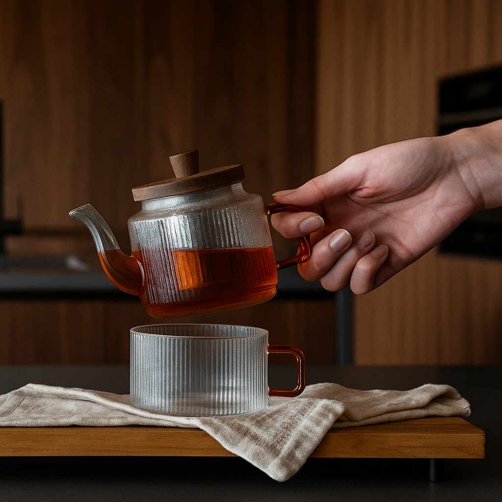 Le design minimaliste de cette collection s’inspire des lignes épurées et élégantes du verre strié, une tendance forte dans l’art de la table et la décoration contemporaine. Ce style, qui évoque à la fois un charme rétro et une modernité subtile, fait de nos théières des pièces polyvalentes qui s’intègrent harmonieusement à toutes les ambiances de la maison, qu’elles soient classiques ou plus contemporaines.